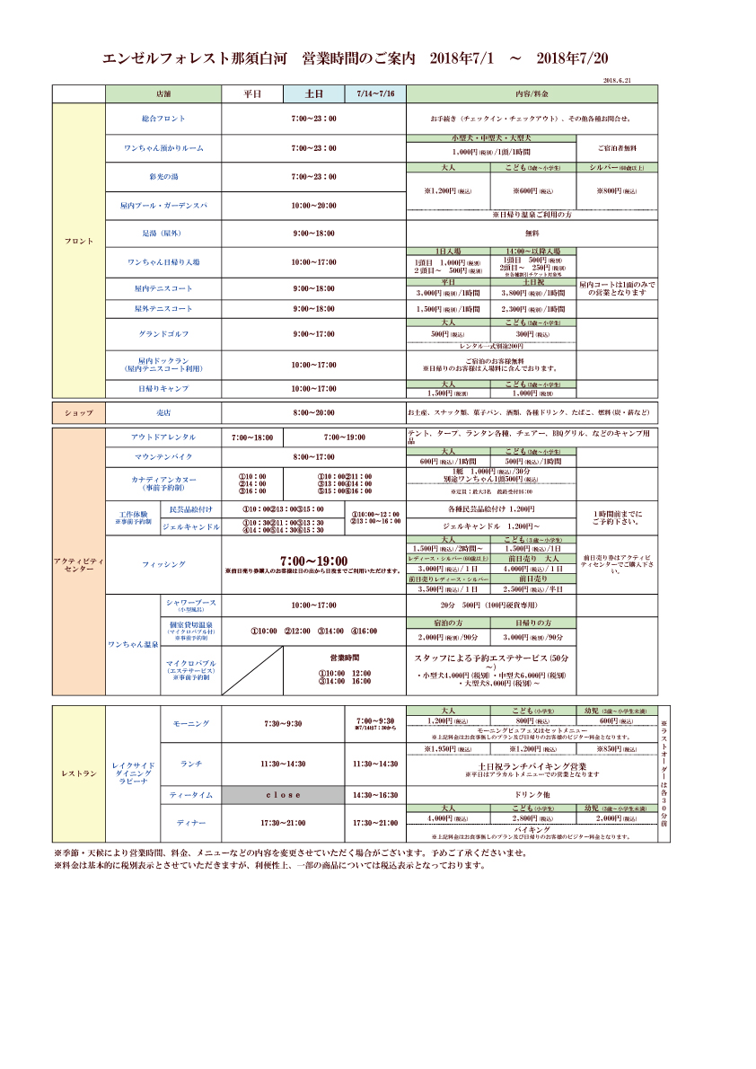 本日より7月21日まで、キャンプでご利用のお客様は・・・